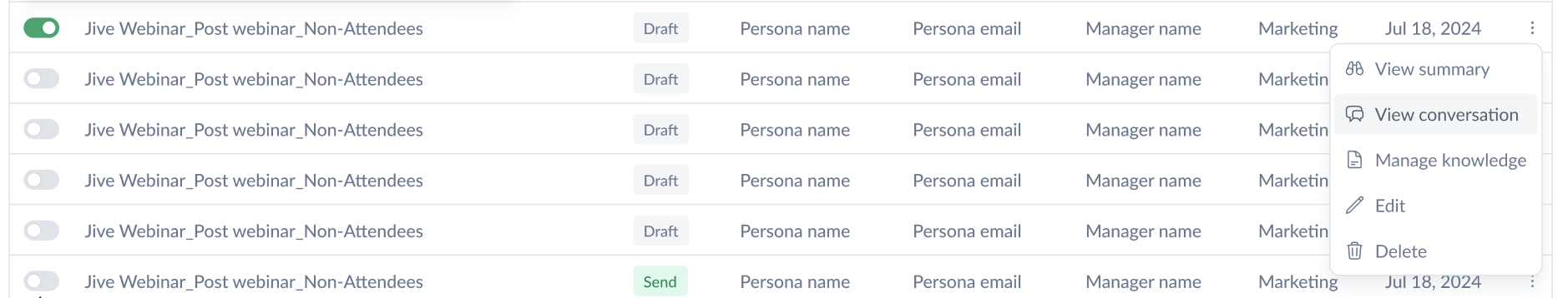 - View Conversation: Click this to review all conversations that are associated with this workflow.
